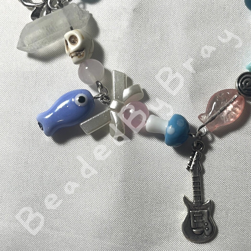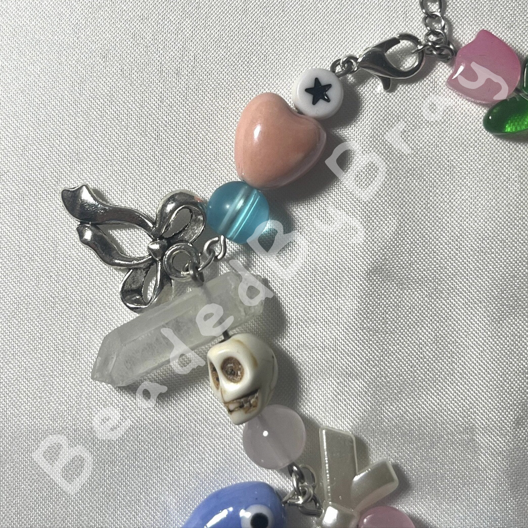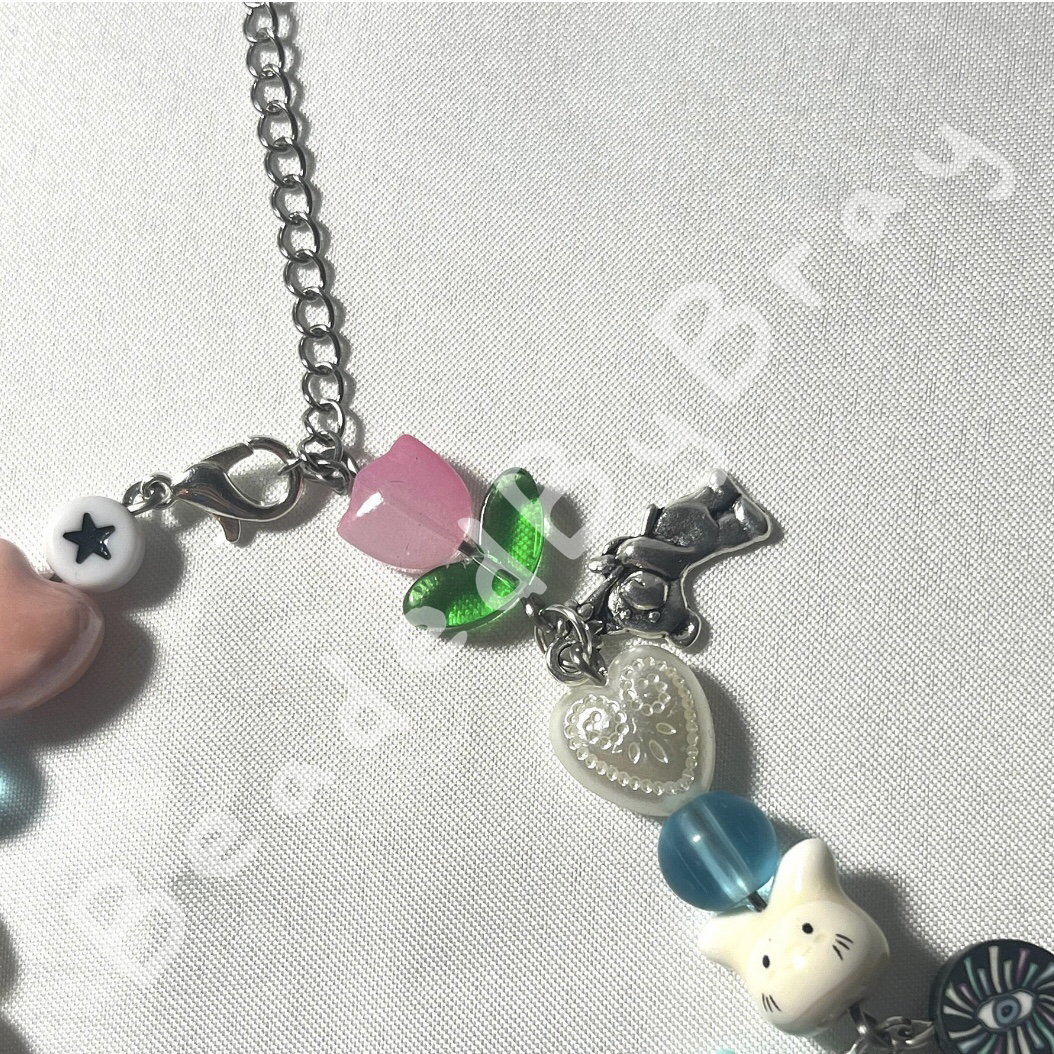 Get ready to boot scoot with the cute and unique style of Harry with our Line Bracelet! Made with glass, ceramic, gemstone, clay, and acrylic beads, each one featuring a playful rabbit, mushroom, quartz, fish, heart, flower, skull, and eye charm. Complete with a 6.75 inch length and 2 inch extender, this everyday accessory is perfect for any Harry or 1D fan. It's the perfect blend of fun and stylish!