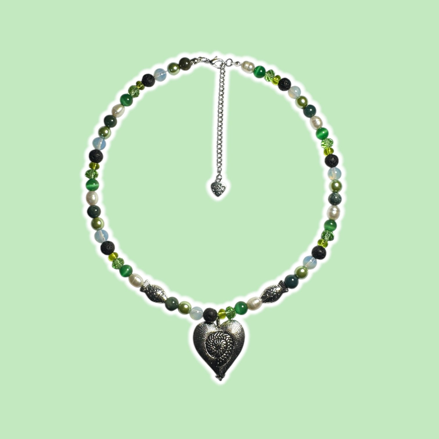Unleash your inner island god or goddess with our Heart of Te Fiti Beaded Necklace! This magical creation combines glass, gemstones, freshwater pearls, shell, cat's eye, and whimsical metal fish beads to capture the essence of Te Fiti herself. Adjustable with a 2.5-inch extender chain and crafted with durable stainless steel hardware, this one-of-a-kind piece brings the ocean's wonder to your everyday adventures!