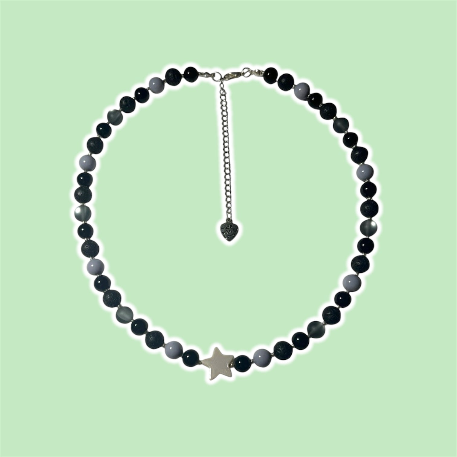 Unleash your nocturnal spirit with the Starfall Beaded Necklace! This celestial treasure combines lava stone and glass beads and seed beads, dancing alongside shimmery stainless steel accents. Complete with a handy 2.5-inch extender chain, it's perfect for star-gazers and night owls alike!