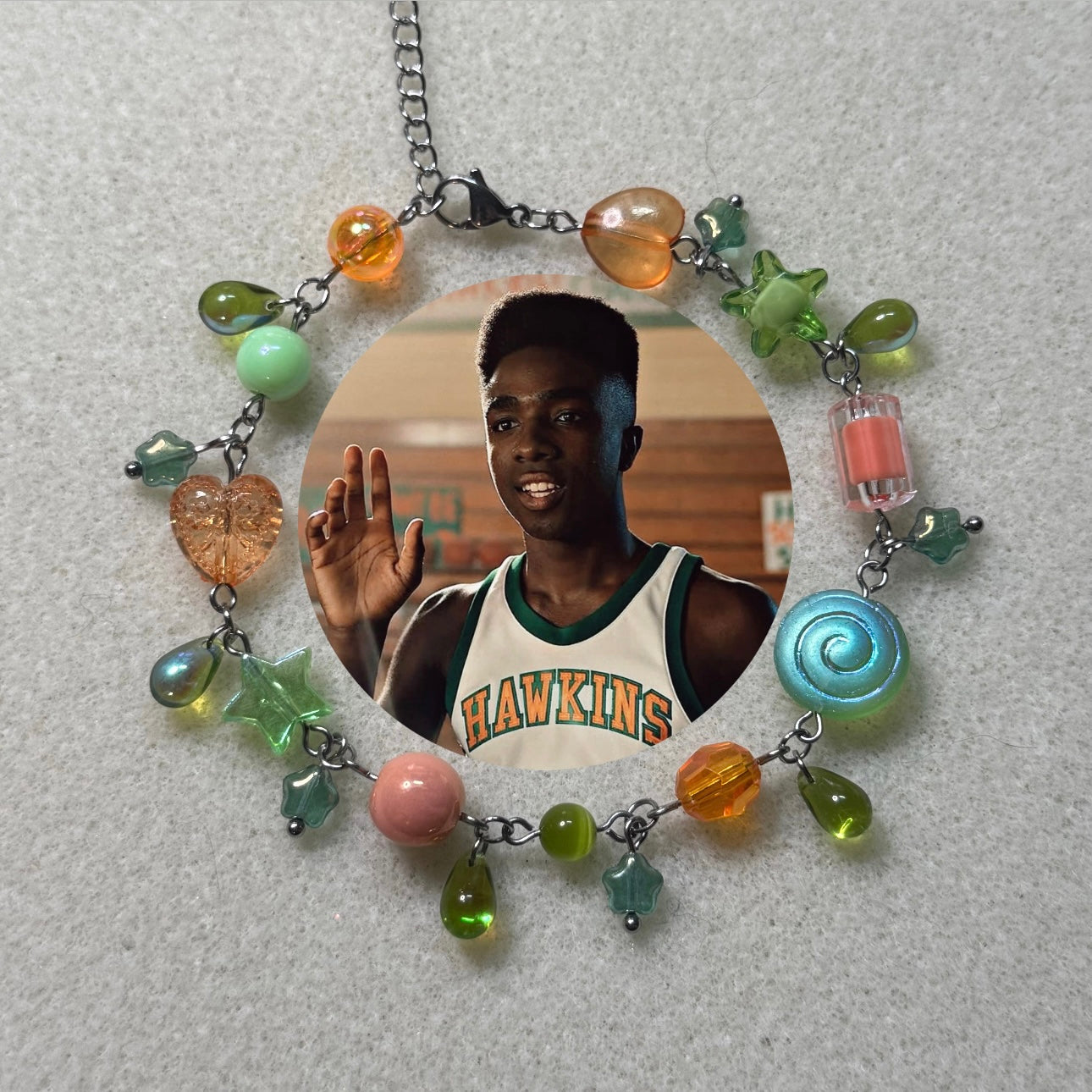 these one-of-a-kind pieces were sooo fun to make, this is the first time i’ve made jewelry inspired by a whole group! it took forever and i loved it, each bracelet is inspired by an iconic outfit or just the vibes/general color palette. they are all stainless steel with a mix of acrylic and glass beads, 8 inches and have a 1.5 inch extender chain! now’s the time to get them to rep your fav and who you’re rooting on to stay alive!